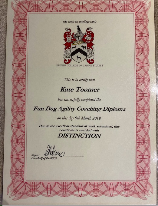 After qualifying as a Fun Dog Agility Coach [Distinction], which is very much based on focus and communication, I was further inspired to continue studying dog behaviour to enable a richer understanding of how our dogs learn and how we can help them thrive.