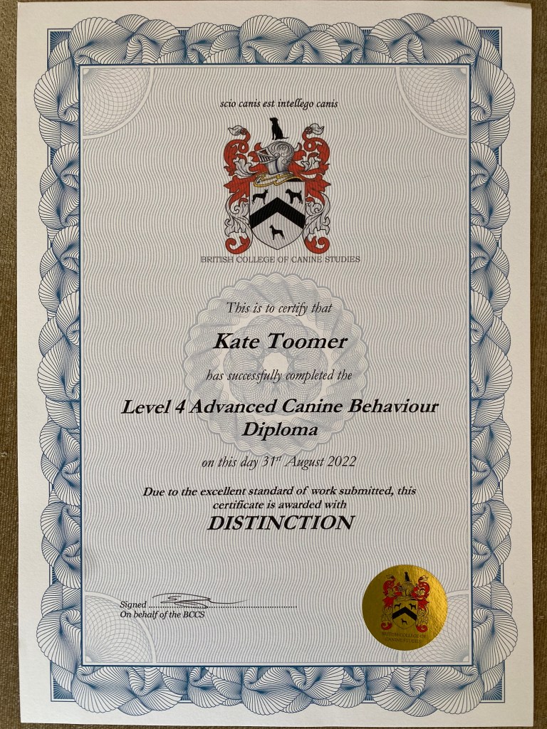 March 2021 – I qualified with my Level 3 PETbc Accredited Dog Behaviour Diploma [Distinction].