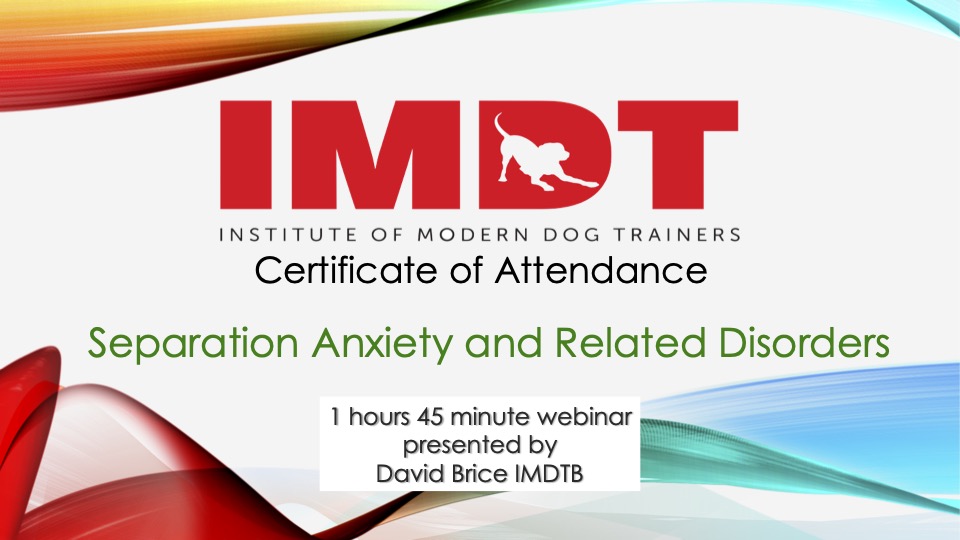 Ultimate Dog Training Instructors Course – Certificate of Achievement The Academy of Modern Canine Behaviour and Training – October 2019